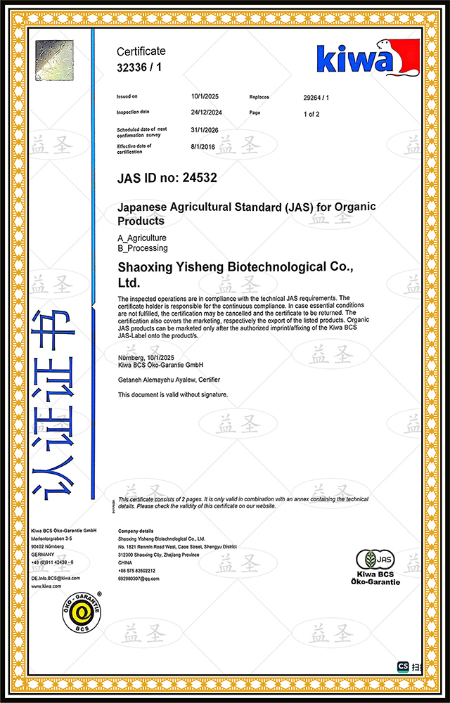 Yisheng Biotechnology, a subsidiary of Wanshida , has obtained the Japanese JAS and USDA organic certificates