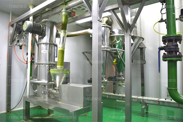 新收割的麥苗經(jīng)過初清洗后被送往加工車間,嚴(yán)格按照食品生產(chǎn)標(biāo)準(zhǔn)進(jìn)行生產(chǎn),期間將會經(jīng)過潔凈水清洗、切段、脫水干燥、氣流粉碎、過篩、金屬探測、蒸汽滅菌、包裝等多道工序;制粉技術(shù)緊跟國際步伐,引進(jìn)日本先進(jìn)技術(shù)實現(xiàn)細(xì)胞破壁,嚴(yán)格滅菌的生產(chǎn)包裝車間,全程自動化的粉體灌裝設(shè)備,控制每一個生產(chǎn)細(xì)節(jié),萬事達(dá)麥業(yè)真正做到嚴(yán)謹(jǐn)、高效。