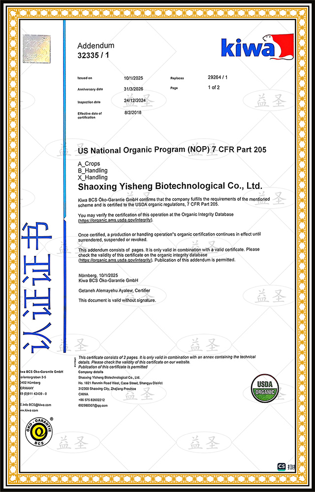 萬(wàn)事達(dá)麥業(yè)旗下益圣生物榮獲日本JAS及美國(guó)USDA有機(jī)證書(shū)